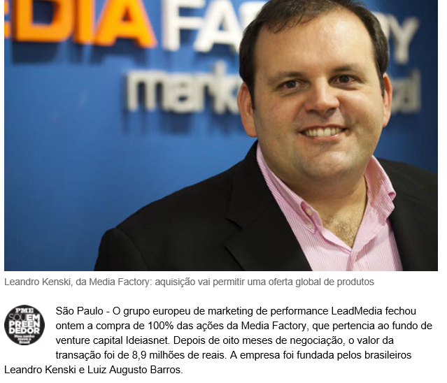 Sendo que um deles fundou a empresa MEDIA FACTORY e eram sócios desta empresa de TI, que no ano de 2010 a empresa foi vendida por quase 9 MILHÕES DE REAIS!